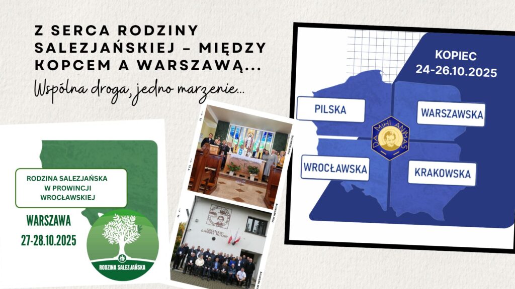 Facebook-f Instagram Youtube o nas aktualności kalendarz formacja dokumenty galeria DOŁĄCZ KONTAKT Z serca Rodziny Salezjańskiej – między Kopcem a Warszawą. Wspólna droga, jedno marzenie Po intensywnych Spotkaniach Rad Prowincjalnych Stowarzyszenia Salezjanów Współpracowników w Kopcu (24–26 października 2025 r.), w których uczestniczyli przedstawiciele wszystkich polskich prowincji, przyszedł czas na kontynuację refleksji – Spotkanie Delegatów Inspektorialnych […]