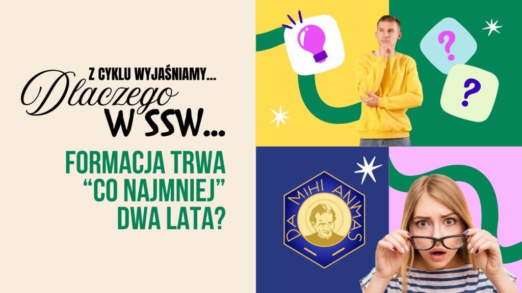 Facebook-f Instagram Youtube o nas aktualności kalendarz formacja dokumenty galeria DOŁĄCZ KONTAKT Dlaczego w SSW FORMACJA TRWA „CO NAJMNIEJ” DWA LATA? Formacja to serce drogi Salezjanina Współpracownika. Nie jest zbiorem spotkań ani kursem przygotowawczym, lecz procesem dojrzewania w powołaniu, który wymaga czasu, towarzyszenia i wspólnoty. W liście Personal Reflection on the Training Period for Aspirants […]