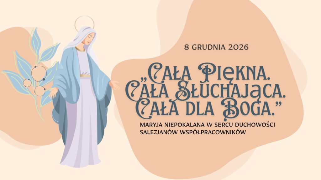 Facebook-f Instagram Youtube o nas aktualności kalendarz formacja dokumenty galeria DOŁĄCZ KONTAKT „Cała Piękna. Cała Słuchająca. Cała dla Boga.” Maryja Niepokalana w sercu duchowości Salezjanów Współpracowników Uroczystość Niepokalanego Poczęcia Najświętszej Maryi Panny ma dla duchowości salezjańskiej wymiar wyjątkowy. Dla świata bywa świętem trudnym, bo mówi o tajemnicy delikatnej, cichej, niemal niewidocznej. Tymczasem dla ks. Bosko […]