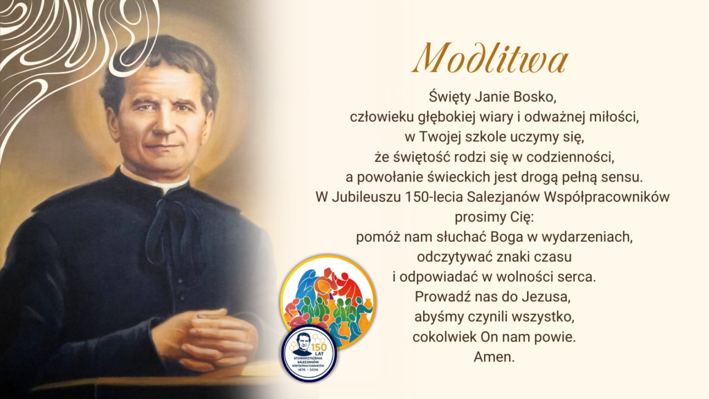 W Roku Jubileuszu 150-lecia Stowarzyszenia Salezjanów Współpracowników zapraszamy do wspólnej modlitwy nowenną do św. Jana Bosko – ojca, wychowawcy i proroka, który wciąż wierzy w świeckich żyjących Ewangelią pośród świata.
